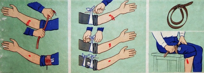 — наложить жгут, в качестве жгута можно использовать любую относительно длинную полоску (например, ремень, галстук, широкая резинка от белья и т.д.).