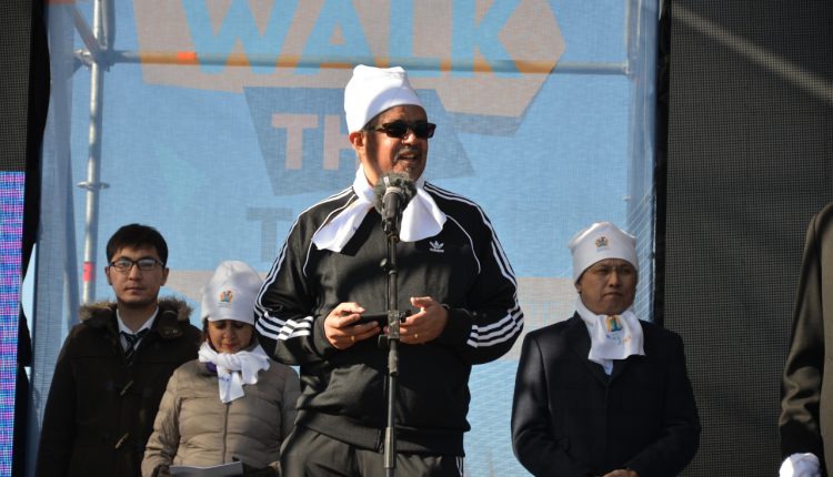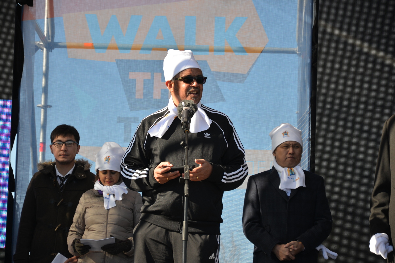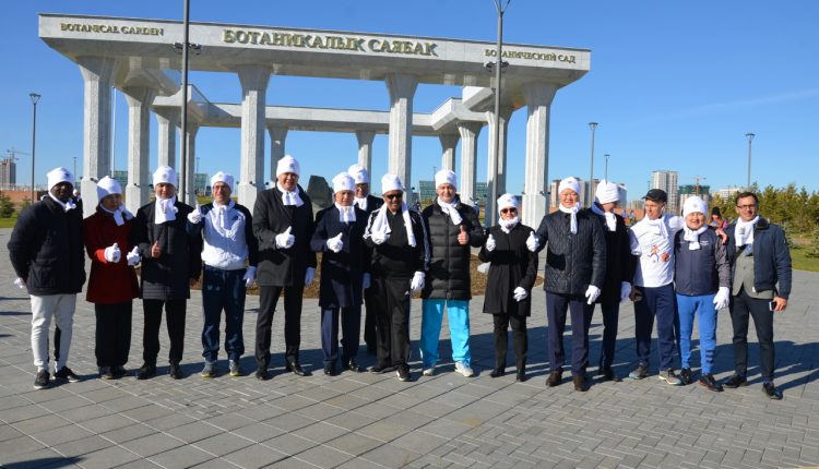 Делегаты и гости Глобальной конференции по первичной медико-санитарной помощи «От Алма-Аты к всеобщему охвату услугами здравоохранения и целям устойчивого развития», посвященной 40-летию Алма-Атинской Декларации ВОЗ по ПМСП, приняли участие в акции «Сөзден іске/WalktheTalk/От слов к делу.