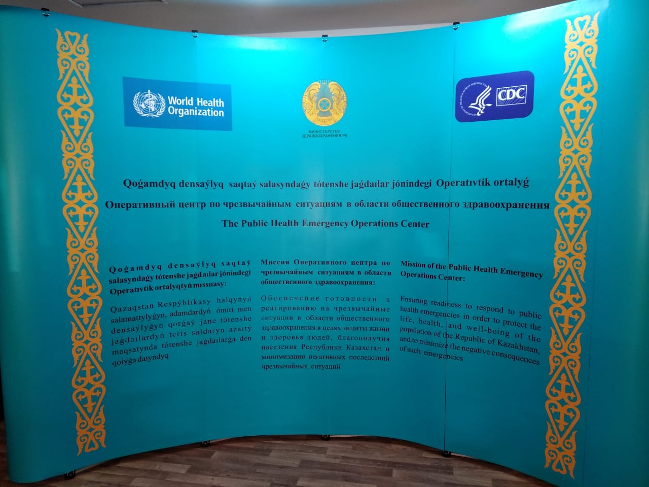 12 апреля 2019 года в Национальном центре общественного здравоохранения МЗ РК с участием вице-министра здравоохранения РК Камалжана Надырова, заместителя главы миссии Посольства США Тед Линг, представителей странового офиса ВОЗ в РК, СДС и ДТРА, МСХ, МЭ, МИИР РК состоится презентация и открытие Оперативного центра по чрезвычайным ситуациям в области общественного здравоохранения МЗ РК