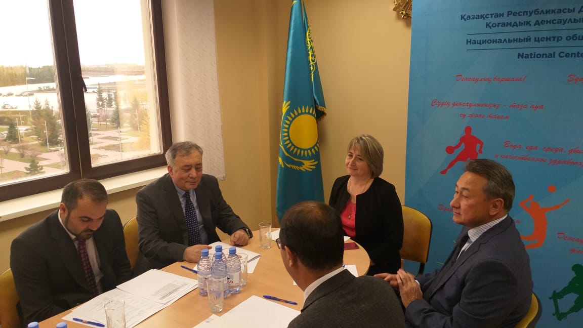 В Национальном центре общественного здравоохранения МЗ РК состоялась рабочая встреча с директором Центра общественного здравоохранения и реформ Азербайджана Гахраманом Хаквердиевым и заведующим отделом политики здравоохранения Центра Набилем Сеидовым.