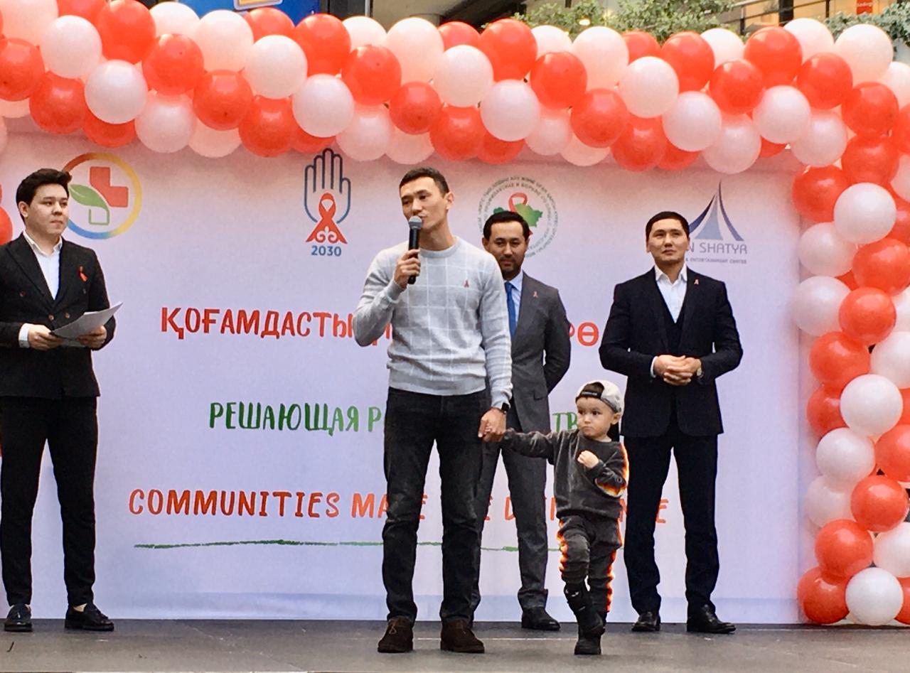 В акции приняли участие специальный посланник ЮНЭЙДС по ВИЧ в Казахстане Бахтияр Артаев и посол здоровья, известный КВНщик Данияр Джумадилов.