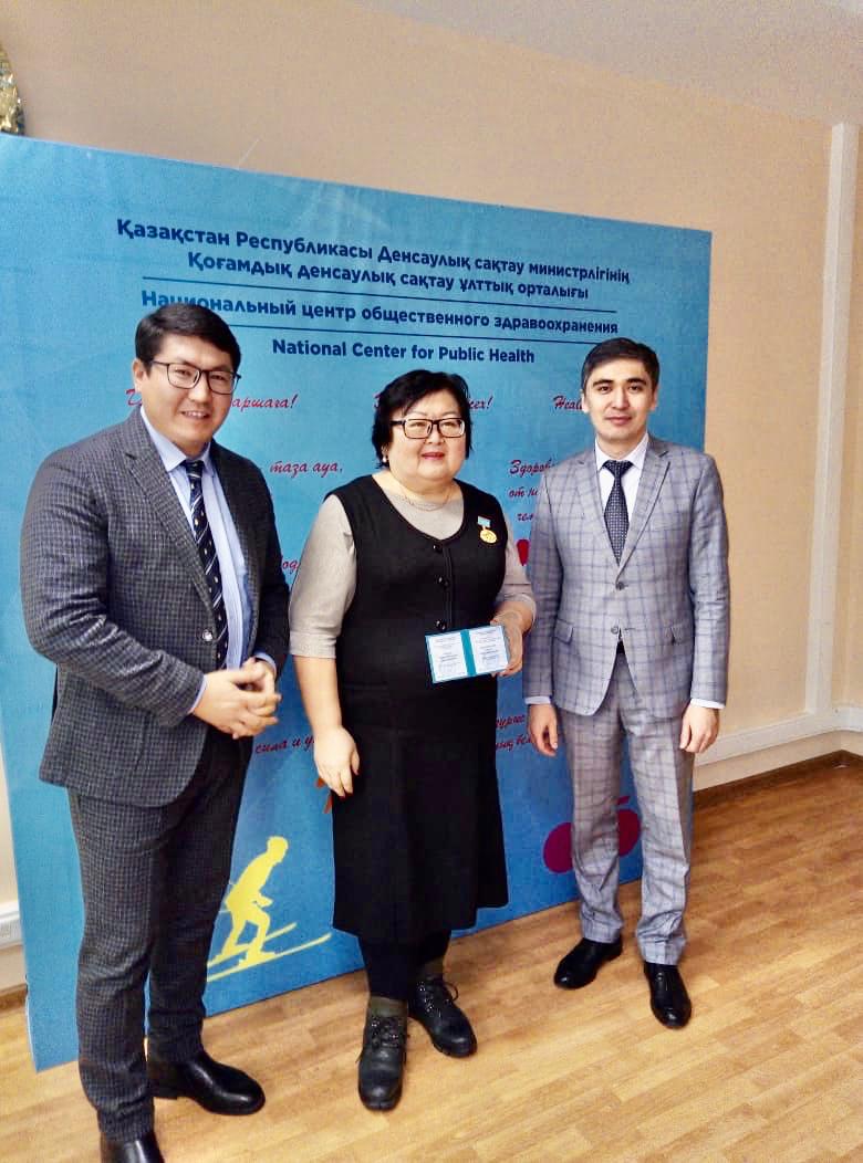 Глава предприятия наградил Нагрудными знаками «Денсаулық сақтау ісінің үздігі» и вручил «Құрмет грамотасы» и «Алғыс хат» сотрудникам: