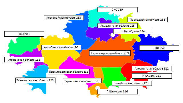 Заболеваемость злокачественными новообразованиями по областям Казахстана