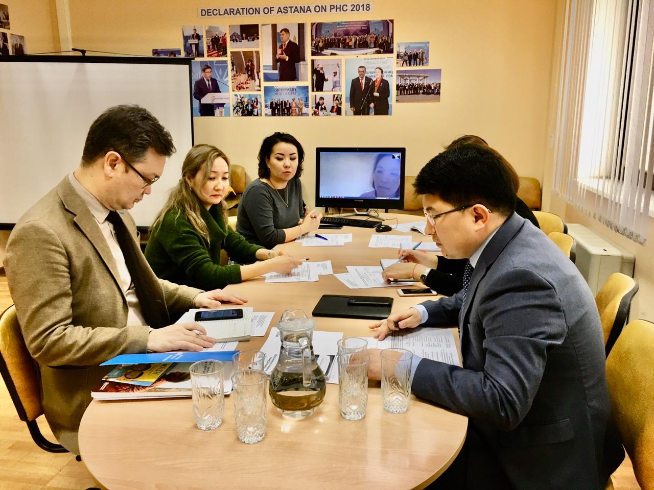 Сегодня, 26 февраля, в офисе Национального центра общественного здравоохранения МЗ РК (НЦОЗ) состоялось техническое совещание по обсуждению Плана реализации Европейской инициативы Всемирной организации здравоохранения (ВОЗ) по эпидемиологическому надзору за детским ожирением (COSI) и базовой оценке доступа к воде, санитарии и гигиене (WASH) в школах. Помимо руководства НЦОЗ в совещании приняли участие проректор/директор Института общественного здравоохранения и профессионального развития НАО «Медицинский Университет Караганда» Камшат Тусупова, координатор по вопросам здравоохранения и питания, представитель Детского фонда ООН ЮНИСЕФ в Республике Казахстан Канат Суханбердиев.