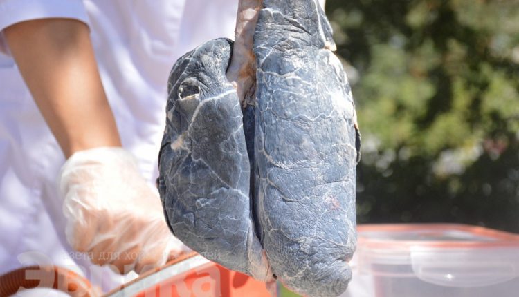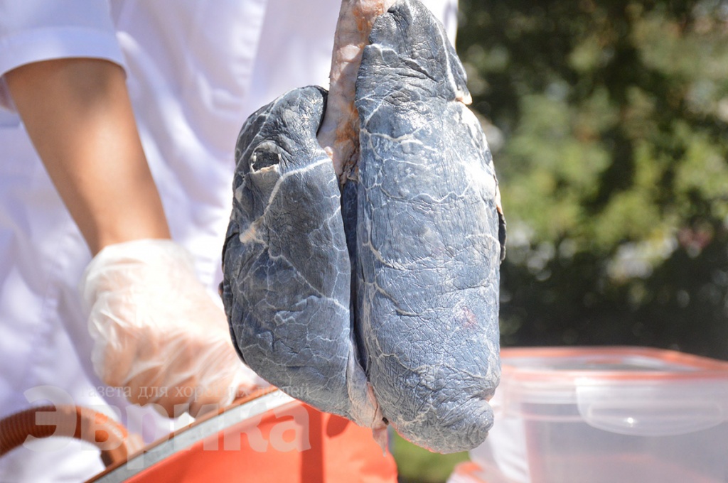 Свиные лёгкие в формалине, чёрный «рот» курильщика и другие занимательные экспонаты привезли с собой алматинские антитабачники.