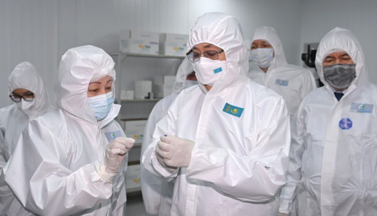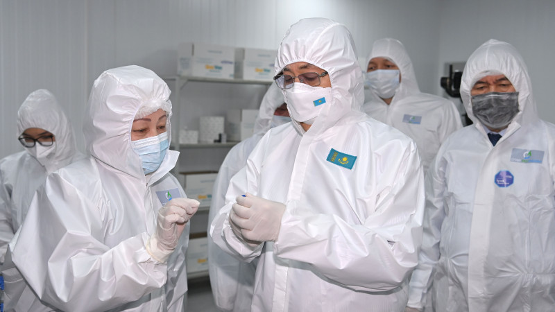 Биофармацевтический завод по производству вакцин QazVac при Научно-исследовательском институте проблем биологической безопасности расположен в поселке Гвардейском Кордайского района. Президенту показали технологическую линию производства вакцин, лабораторное оборудование и мобильные реакторы.