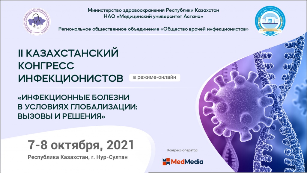 7-8 октября 2021 года в г. Нур-Султан в смешанном формате (онлайн и офлайн режим) состоится II Казахстанский Конгресс инфекционистов «Инфекционные болезни в условиях глобализации: вызовы и решения».