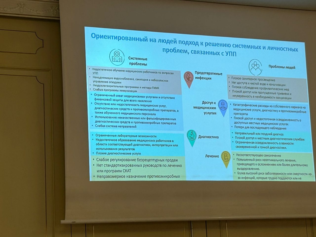 В ходе совещания обсуждены актуальные вопросы по укреплению Национальной программы эпидемиологического надзора за антимикробной резистентностью (АМР) и выработки дальнейших мероприятий, согласно концепции «Единое здоровье». Рассмотрены проблемы чрезмерного и ненадлежащего использования противомикробных препаратов для лечения людей и животных, представлены рекомендации по усилению лабораторного потенциала, согласованных мер реагирования в секторах здравоохранения, ветеринарии, охраны окружающей среды.