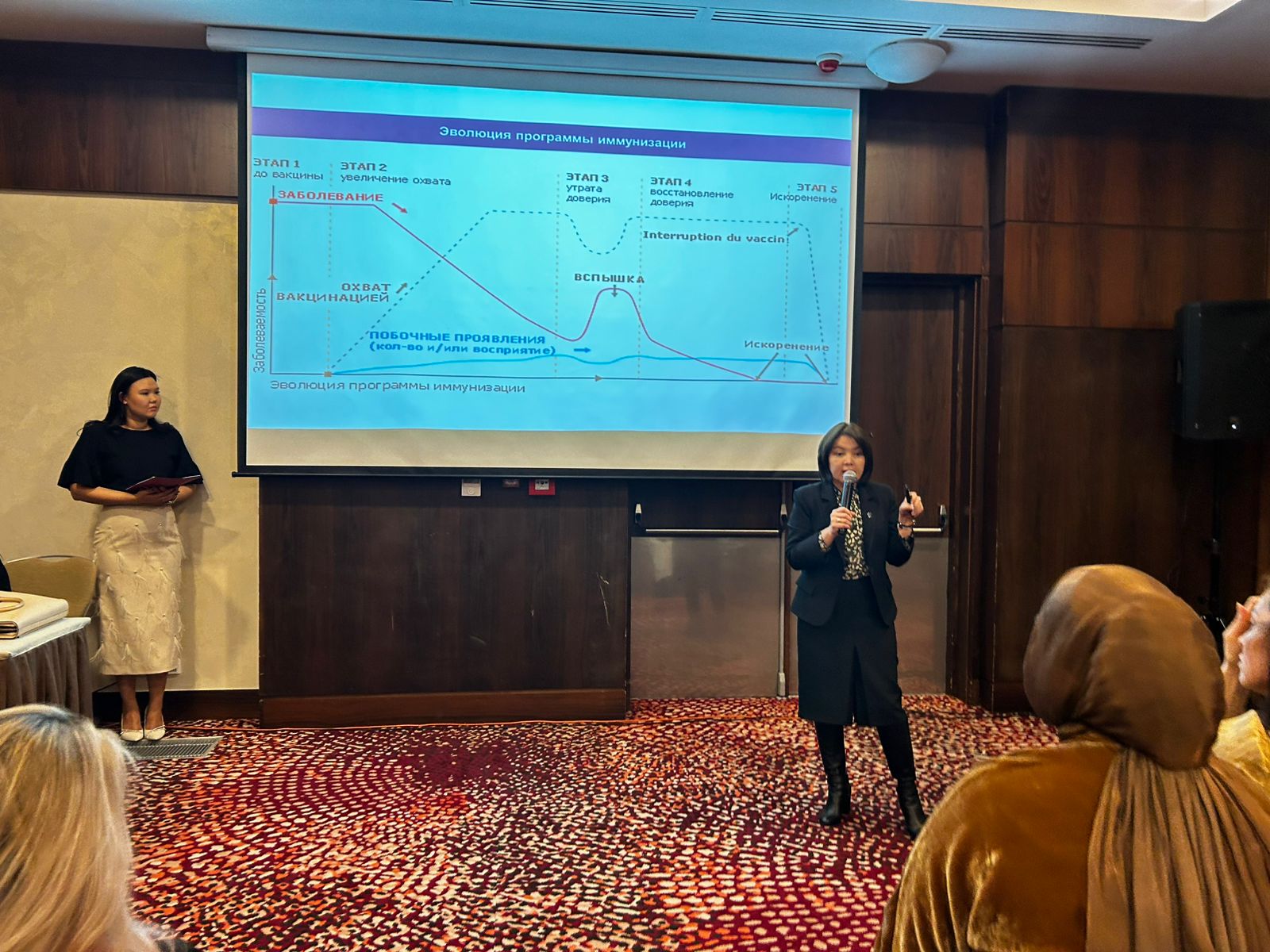 Манар Смагул выступила с докладом о вакцинации детей в Казахстане.